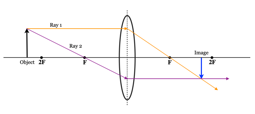 In an attempt to establish a logical framework in my own head, I put pencil to paper practicing all the possible permutations of lens and mirror ray diagrams for each of the possible object locations (there are a total of twelve). It seemed a little overwhelming until I realized that you really only need to remember two things: parallel – F and F – parallel. Well, maybe this is a bit of an over simplification but it is a great place to start.
